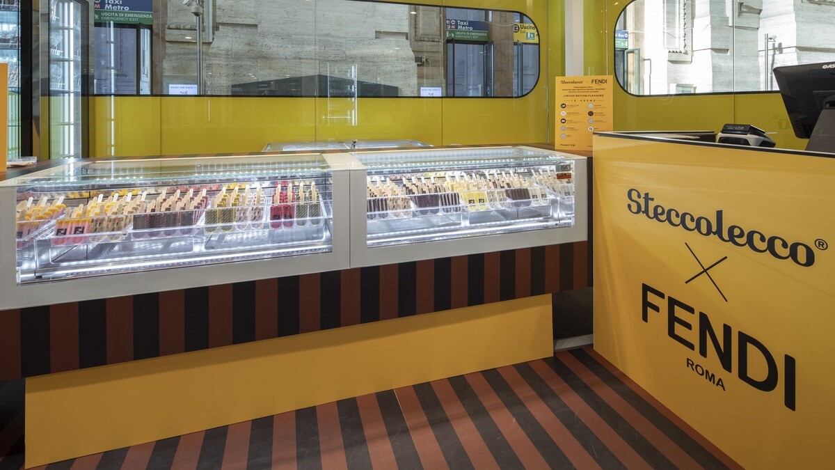 早在2018年FENDI就曾和Steccolecco合作,當時以Steccolecco最知名的義式冰棒為靈感,為2018早秋系列設計玩味十足的皮草吊飾,而這回Fendi再找上這間知名手工冰棒名店Steccolecco打造聯名限定店。