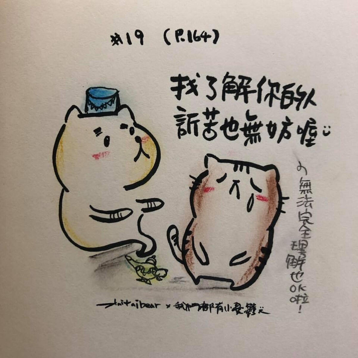 我難得越來越喜歡最近的自己,以前都很不喜歡自己的狀態,比方太焦慮,太緊張。以前覺得自己在做的事情很有價值,但不覺得我有在好好當一個「人」,我覺得我在當海苔熊,是一個生產文章內容的機器人。我第一次做「沙遊治療」時,手伸到沙子裡摸著摸著就哭了,沒有預期會想到媽媽的背。明明我這輩子很多焦慮跟辛苦都是媽媽影響的,她都把我弄那麼焦慮了自己應該也很辛苦吧。那天晚上我就去抱我媽。後來我有空就去抱她。人生最大的挑戰是抱我爸,因為他更難親近。在這幾次擁抱當中,我才漸漸覺得我像個人。