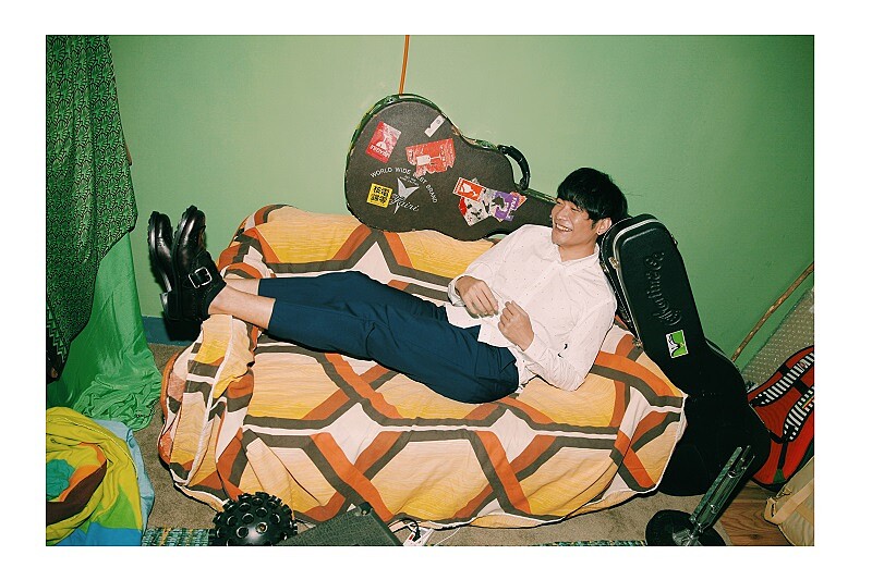 打開藏身在公館尋常住宅區的一樓鐵門,眼前的空間就是黃玠與朋友合租的工作室,走向客廳盡頭的那扇門,便是專屬於他的小小天地。這裡,是他創作的核心和一切的起點。窄小的空間,無言傾訴了他最需要的安全感;有著愛心投影的彩色迪斯可燈,偷偷洩漏了他的派對魂。敲了敲門,黃玠帶著招牌靦腆笑容現身,歡迎我們闖入他的音樂小宇宙。