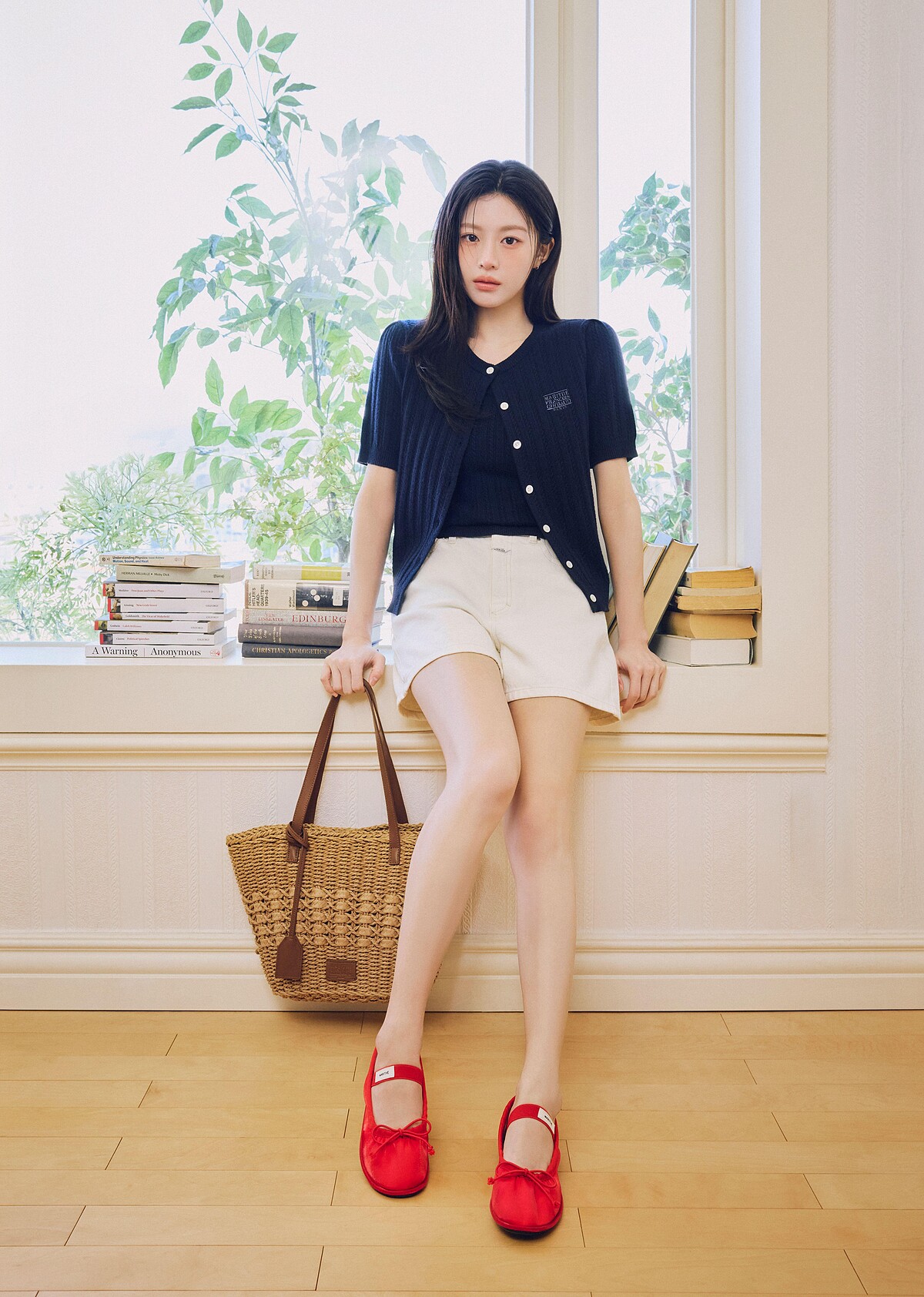 新廣告以《Portrait of the Summer》為主題,用穿搭描繪夏季的清新明亮氛圍,高允貞以短袖針織衫搭配丹寧短褲,再以紅⾊蝴蝶結平底鞋收尾,為基礎的清爽夏季造型注入一抹熱情,同時呈現法式優雅以及活力的面貌。
