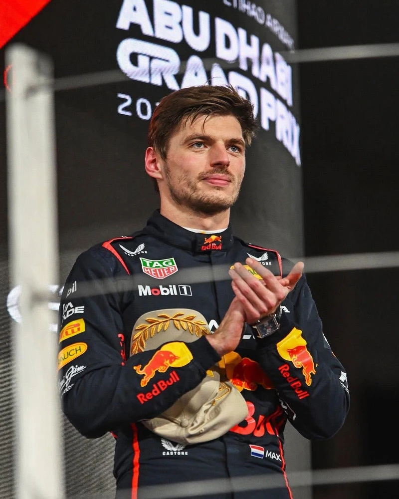 馬克斯·維斯塔潘Max Verstappen佩戴 TAG Heuer Monaco 經典左冠計時腕錶,出戰2025年F1最終場阿布達比大獎賽勇奪冠軍。