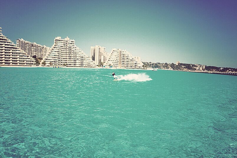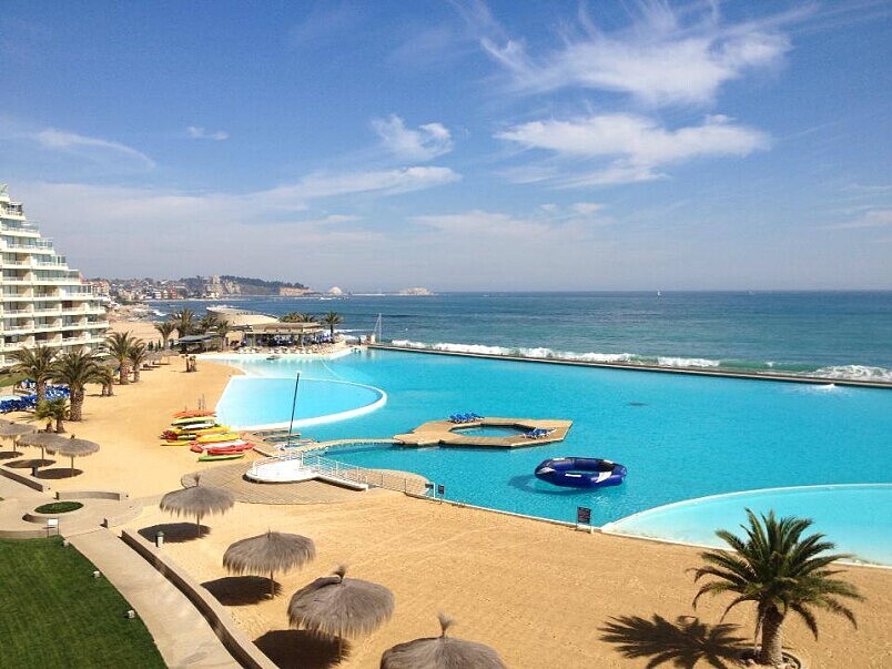 這座金氏世界紀錄 (Guinness World Records) 認證最大的泳池,占地約八公頃,最大深度為35公尺,池水抽取自太平洋的海水,經處理過濾後注入泳池,也就是說這座泳池說是海也不為過,除了游泳以外還可以嘗試許多海上活動,如果有計劃來智利遊玩,荷包又可以負荷的話,不妨可以來朝聖一下!