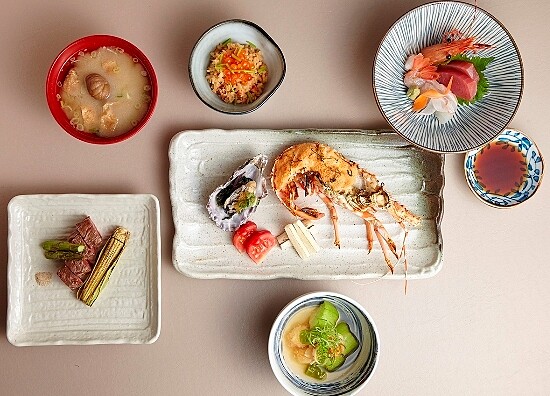 融合在地時令海鮮及季節性限定,館內鍋物餐廳三燔,也推出了集合秋日美味極致的泉之賞饗宴。以東海岸蝦子鯛魚為主角的"刺身盛合"、Prime等級佐以蔬菜如蘆筍"鹽烤頂級去骨牛"、特選礁溪獨有溫泉絲瓜的"絲瓜海鮮煮明蝦",以昆布高湯為基底,加上些許溫泉絲瓜、干貝與鮮蝦,主餐點"龍蝦明太子",結合明太子燒與日式美乃滋,搭配小火慢烤的龍蝦,完整呈現海鮮的鮮美,又以礁溪在地金桔調味橙醋醬,搭配現烤生蠔佐以蔥花、蘿蔔泥,簡單卻也最能入口的幸福。泉之賞秋季饗宴需事前預約(每人NT1,580+10% )