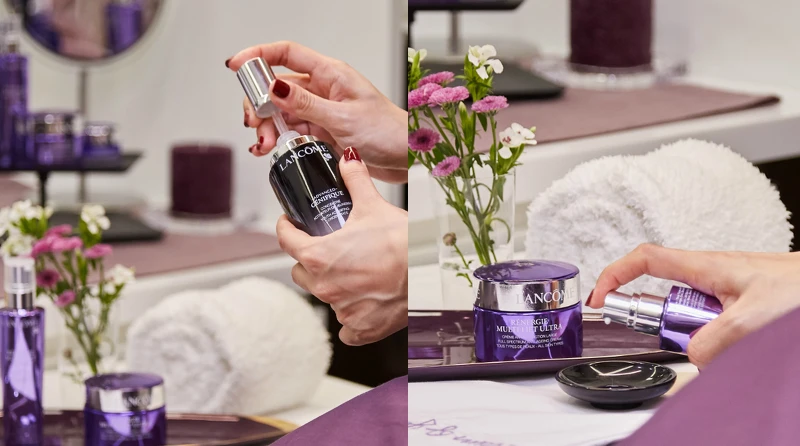 再來就會用蘭蔻獨創的瑜珈Y.O.G.A四大按摩手勢:Y嫩肌熱身、O煥白提亮、G緊緻拉提、A放鬆伸展,來針對全臉開始做瑜珈,也針對肌膚檢測後發現明顯問題的部位,強化護膚效果,快快找回肌膚的青春年華!