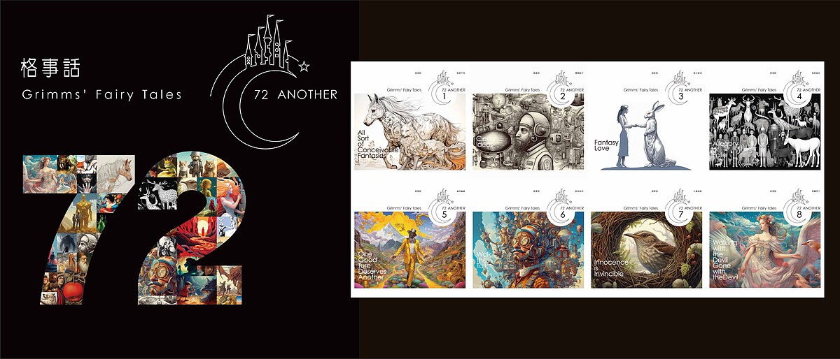《格事話-另一種格林童話》除了有聲書之外,亦同步發行紙本書籍,而讓大小朋友在現今數位化時代下,從聆聽到閱讀都能培養出樂趣。裝幀設計邀請葛萊美獎得主蕭青陽,以科技AI為筆,在時光隧道中,將古老的童話與傳說重新編織,如奇幻的繪畫,勾勒出格林兄弟兩百年前所收藏流傳於歐洲的怪奇民間故事,編碼繪出的圖像,讓故事在虛實之間交織,而將古老的影子運用AI撰寫與重現故事的靈魂重生。彷彿穿越時空,在現代科技的迷霧中重新發現逝去的童年夢境。