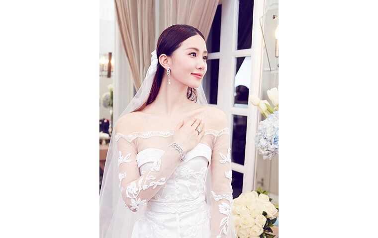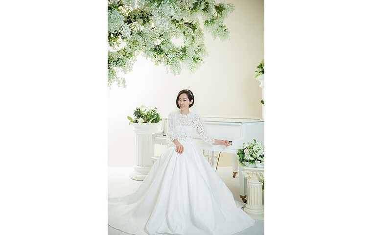 有別於傳統的長髮,Gigi 林如琦以俏麗的短髮來打造新娘頭,由於如學生頭般的清湯掛麵,所以重點會擺在婚紗頭飾,先將短髮吹整後梳乾淨,然後塞在耳後,讓短髮自然垂墜在臉上,再以環狀的桂冠裝飾,簡單又浪漫。