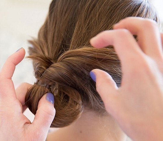 2.將整把馬尾往洞裡捲進去