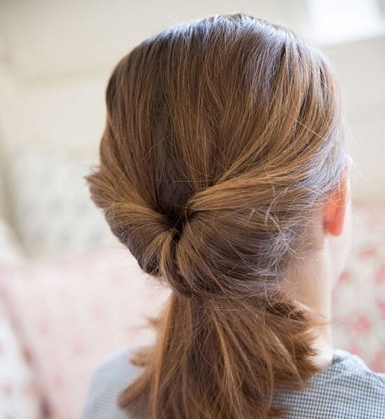 想讓低馬尾有點變化除了戴髮飾,還可以利用將馬尾往內卷的方式製造自然波紋,就能讓簡單低馬尾多變化。
