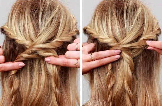 期待已久的星期六當然要來點不一樣的,將耳朵上方的兩側髮束分別編成辮子並用橡皮筋固定,然後將兩條辮子在後腦勺中間交叉後用小黑夾固定,最後別忘了將辦子拉鬆,讓辮子看起來更立體,就可以美美出門去了。