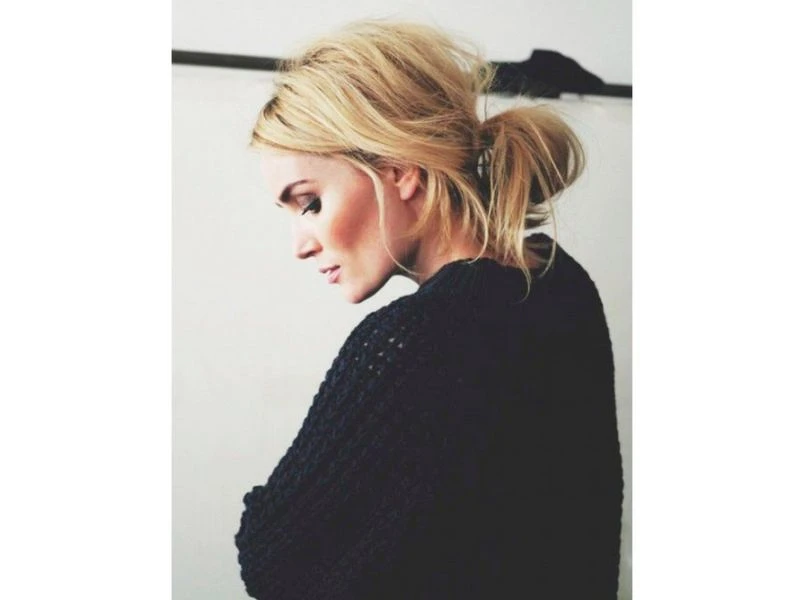 號稱法國女人最愛的髮型之一,只要先將頭髮收攏綁成低馬尾,繞最後一圈橡皮筋時將頭髮對折成一半固定,撐出髮髻的感覺,最後再抓出耳朵兩側和瀏海的髮絲製造自然微亂感就完成。