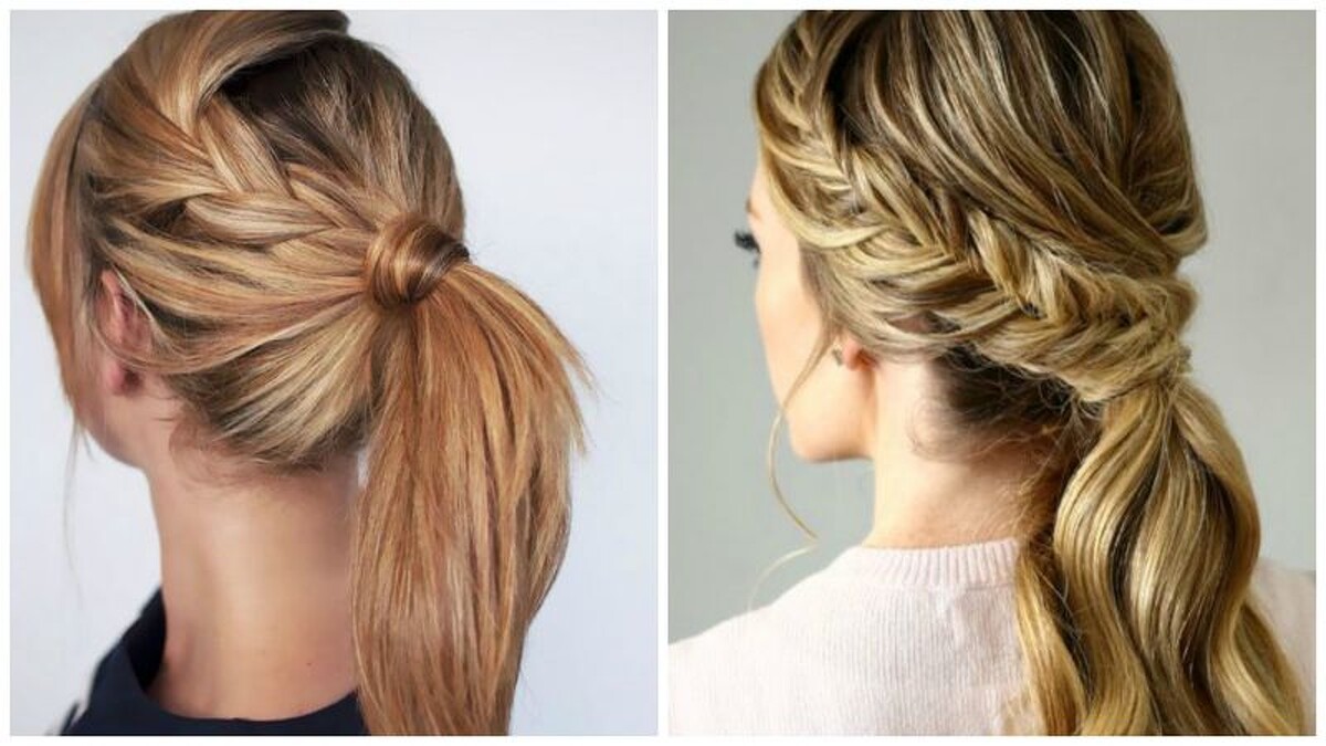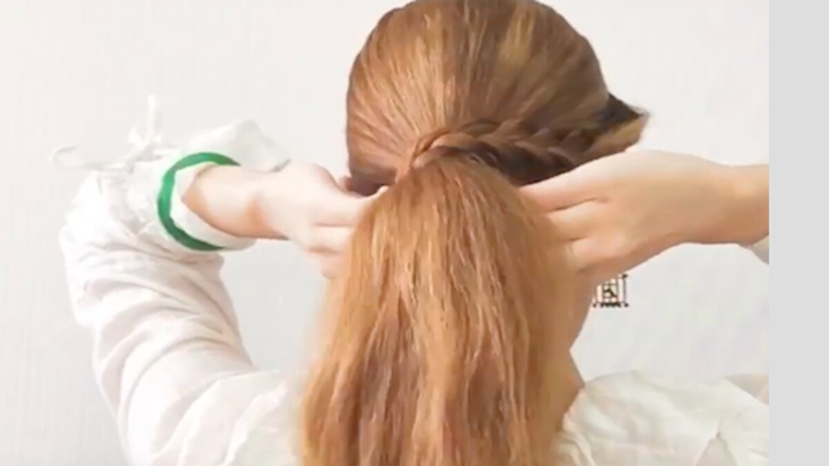 Step6:把辮子往馬尾處紮入並繞著馬尾成為自然成型的馬尾束即可。