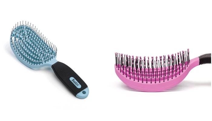 顛覆傳統形式的雙C曲線,鑲有梳齒那一面的「C」,不只符合頭型線條,還可以有效避免不慎敲擊頭部,更重要的是「C」的包覆線條加上大梳面,可以加大梳理面積,因此不論是多麼糾結的秀髮,都只需兩、三下就能打造出完美造型。