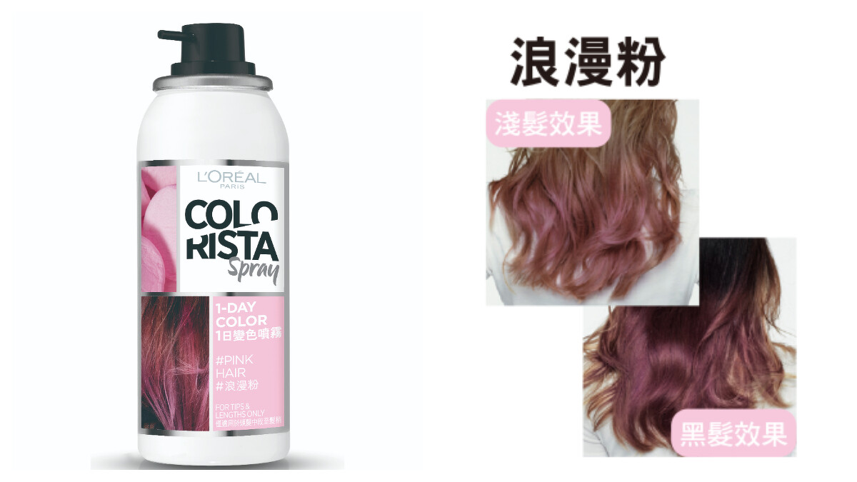 此外,「1日變色噴霧」不受限於頭髮的底色,按壓一次即可輕鬆上色;深淺效果則受頭髮的底色而有所差異,髮色越淺越顯色,漂過的頭髮使色彩更鮮豔。使用「1日變色噴霧」噴染顏料若過量,僅需靜置約一分鐘,再用梳子梳掉多餘顏料即可完成造型。如同一般非防水彩妝,並無防水、防汗、防油的效果,使用後避免淋雨、劇烈運動流汗等外在因素影響,持色效果可維持至下一次洗髮。清潔時,使用一般洗髮精即可洗去顏料;若洗髮後仍有顏料殘留,是因頭髮過於乾燥導致顏料附著力太強,僅需再用潤髮產品,便能將殘留顏料順利洗淨。