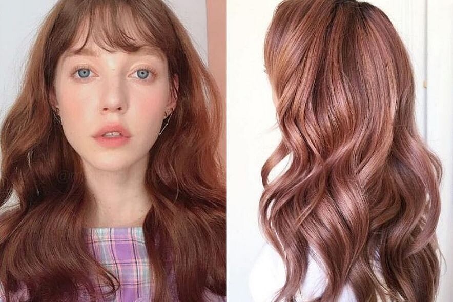 跟玫瑰色、橘色有關的髮色在今年大熱!帶有紅棕感覺,又帶點紫色調的咖啡玫瑰色,很適合白皮膚的女孩提升氣色,散發成熟知性的氣質,完全是溫柔小姊姊必備色!