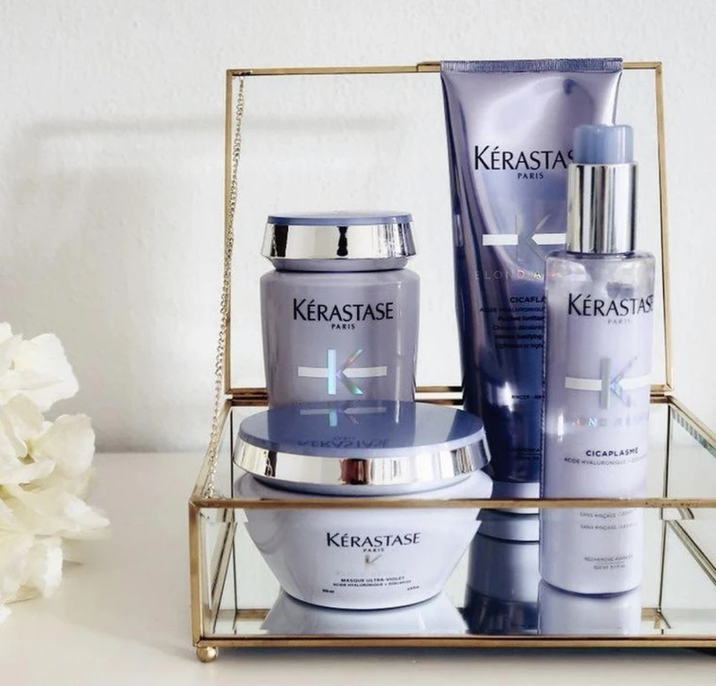 帶有「紫羅蘭矯色粒子」的髮浴與髮膜, 運用色彩學的補色的原理,好比化妝品中帶有紫色調的隔離霜能中和偏黃的膚色,紫羅蘭矯色粒子能修飾矯正秀髮帶黃、橘、銅的色調,染冷色系或棕色系的秀髮能幫助修飾髮色 ,對於漂染後的秀髮效果更為顯著。