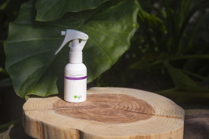2. 隨身攜帶「頭皮噴霧」,當頭髮出汗出油時,噴於頭皮兩側、頭頂部與後側髮根處,並以指腹稍加按摩,舒緩緊繃頭皮,去除頭氣異味,瞬間沁涼清新又舒爽。