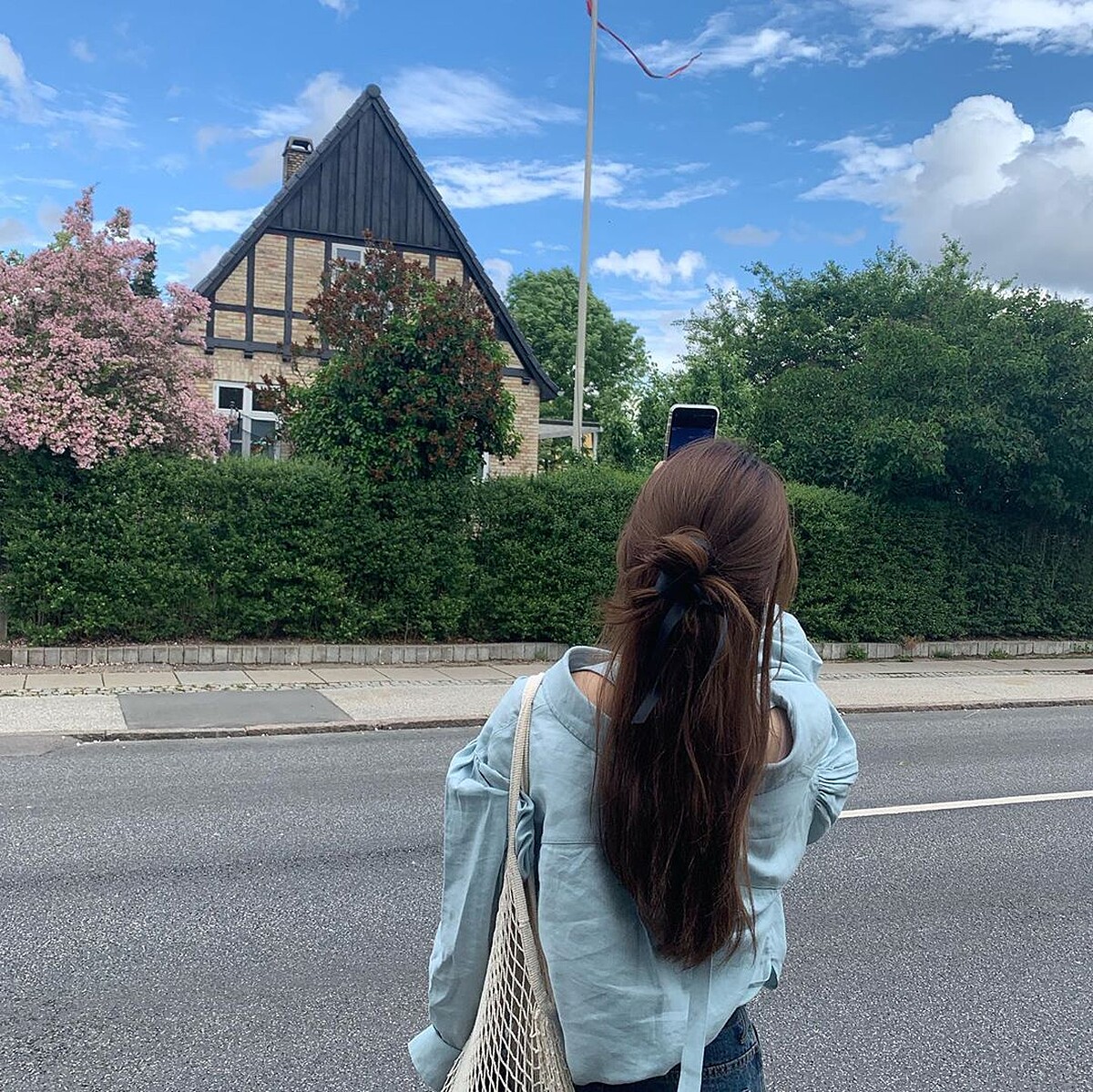 也可以學學秀智,綁髮時加入緞帶,還能增加法式的溫柔質感!