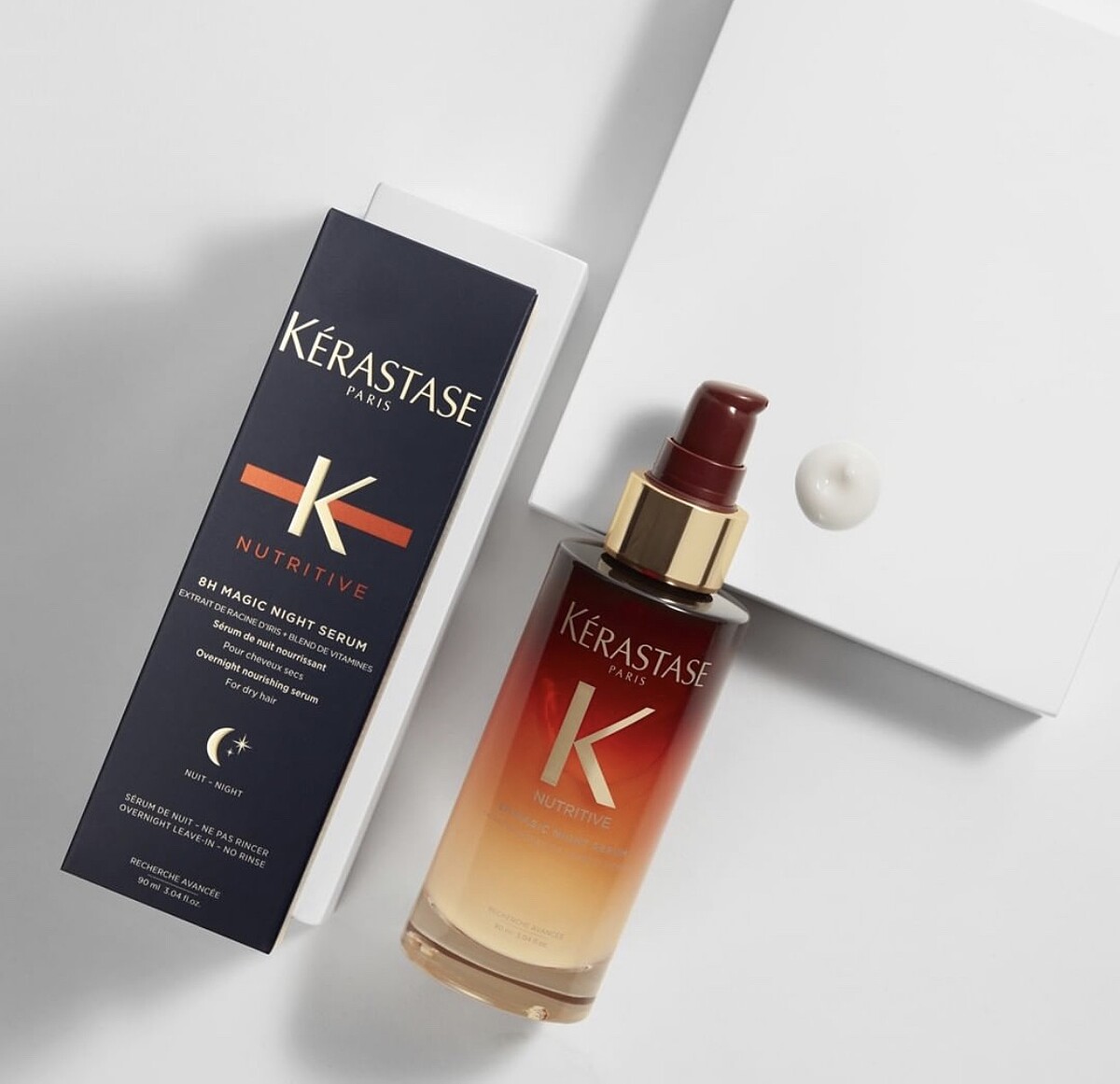 KÉRASTASE巴黎卡詩教育總監李明哲分享,除了更換絲質枕頭減少秀髮磨擦,如果睡前能使用適合的密集修護產品、善用夜晚8小時的停機時間,其實也能把保養危機化為轉機:睡前吹乾頭髮後,取2-4下靜夜賦活精華或靜夜修護精華,於髮中到髮尾,無需沖洗,建議可將秀髮盤起、減少摩擦。