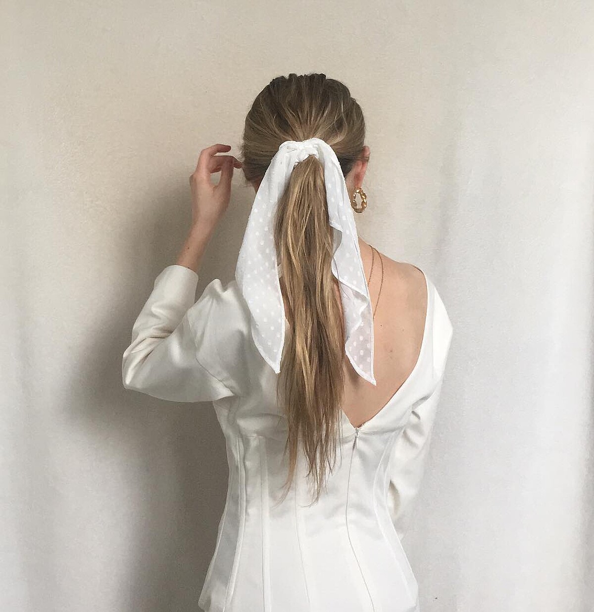 1.絲巾綁低馬尾