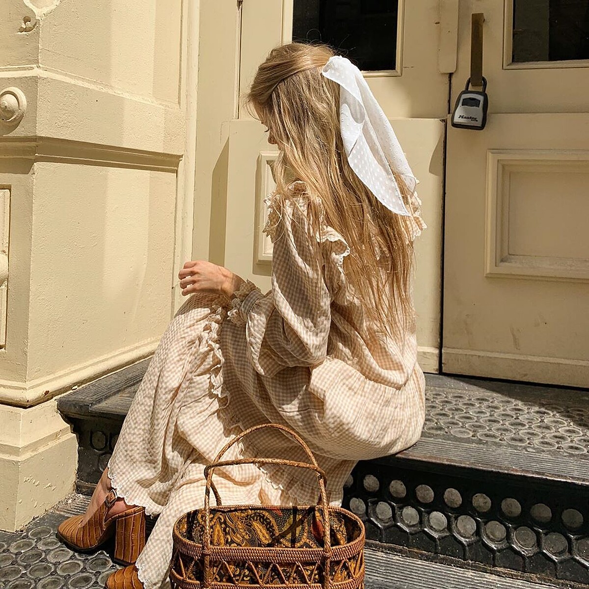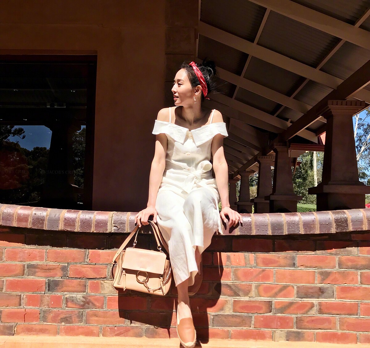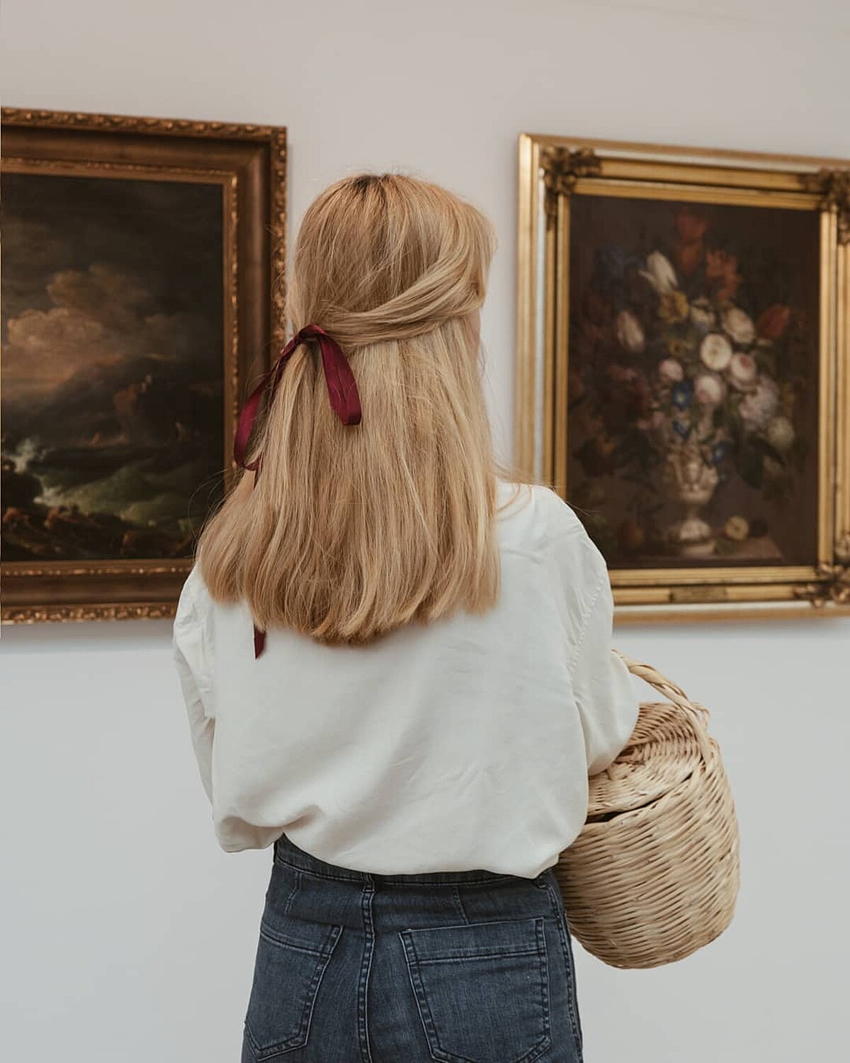 半馬尾配上絲巾整體氣質變得乖巧可愛,像復古電影《小婦人》、《傲慢與偏見》時期一般復古優雅。