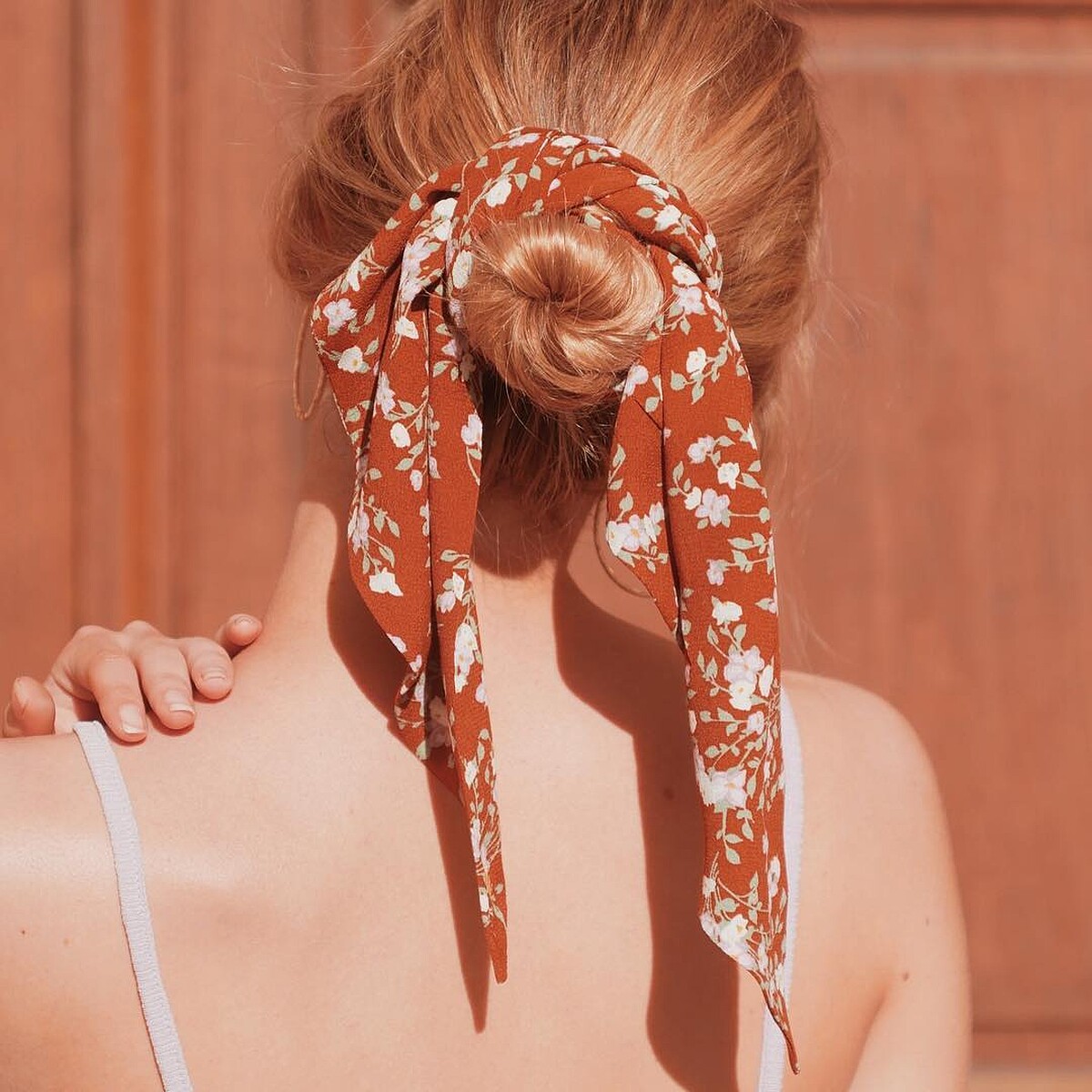 另外還流行用絲巾綁低丸子頭,選擇繽紛花樣的絲巾會很有渡假感,夏天紮起來清爽舒服又吸睛。