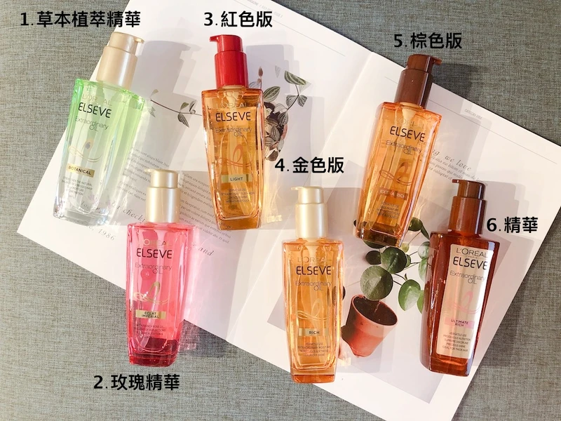 被稱為開架髮油王的巴黎萊雅金緻護髮精油系列,四款經典修護款:紅色版、金色版、棕色版與精華等,分別針對不同髮質受損問題設計,多款選擇能滿足各種髮性和需求。此外,還有綠色和桃色的「訂製香氛款」,讓髮絲同時帶有迷人花果香氣。