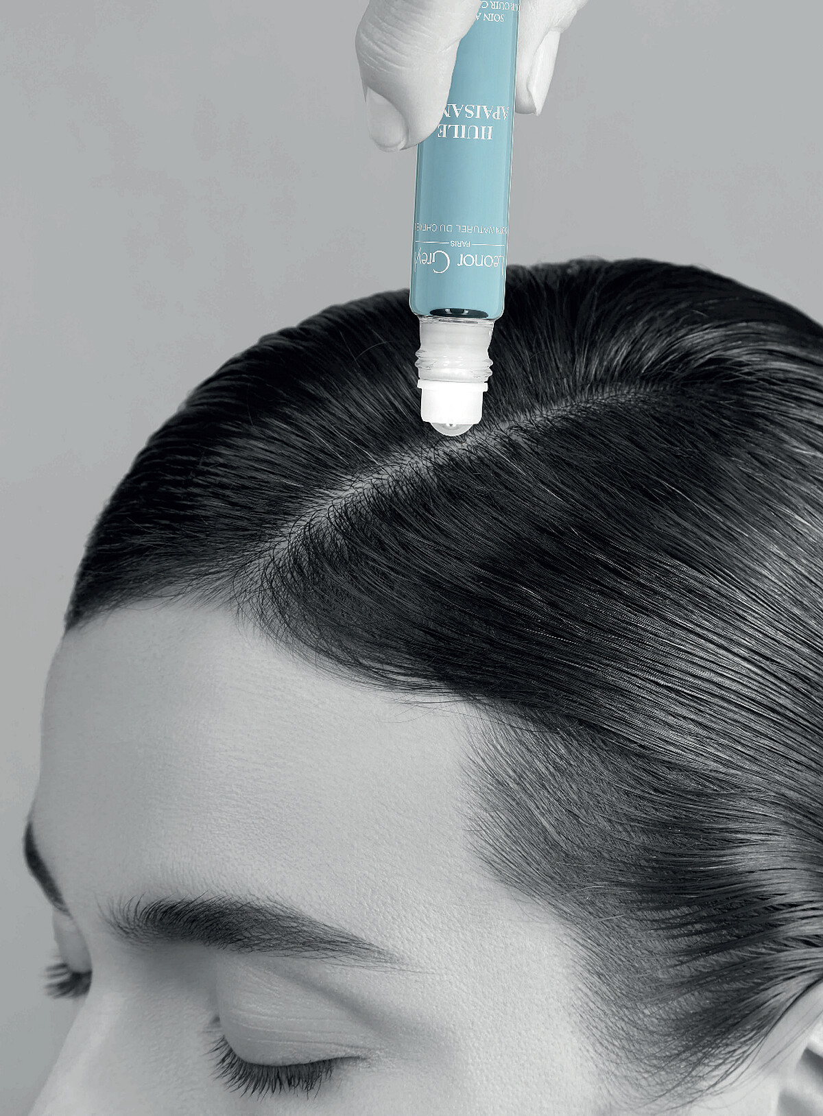 藍色緩敏精萃油的滾珠塗頭設計,能精準塗抹於需要緩敏修護的部位,可於洗髮前分區塗抹使用於乾的頭皮上,或感到不適時隨時局部塗抹,有助平衡肌膚,達到緩敏目的;此外,藍色緩敏精萃油也可作為染髮前的頭皮隔離舒緩,避免染劑中的化學物質侵害,誘發刺激感,是一款方便使用、有感的頭皮緩敏精萃油。