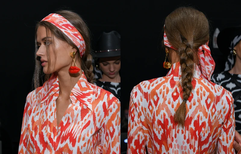 在2020春夏紐約時裝週,AVEDA客座設計師Jon Rayman為Chiara Boni打造充滿西部風情簡約三股編髮,呼應 Chiara Boni的春裝,並使用花植豐厚造型霧加強三股編所呈現的髮量感。