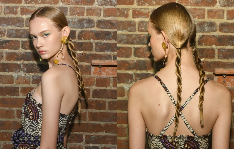 2020年雙辮持續發燒,AVEDA客座設計師Bob Recine運用簡單卻充滿年輕氣息的二股繩編造型,呼應 Ulla Johnson新一季春裝的多元文化特色。