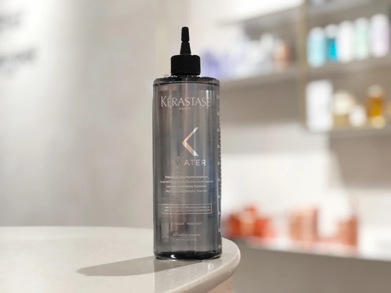 設計師替消費者洗完頭後,在後洗台直接在髮上使用超光速瞬效機能水,當中的縮時修復科技,遇水立即啟動活性成份,瞬間填補頭髮毛鱗片空洞,並會在頭髮表面產生一層光滑無瑕的薄膜,過程僅需要8秒。讓吹整完後的頭髮宛如自帶聚光燈般有光采。