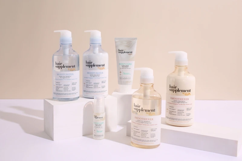 LUX推出全新「髮の補給機能飲系列」,主打為秀髮補給養分,就像頭髮的機能飲一樣,尤其是針對受損髮及細軟髮,在家也可以輕鬆洗出輕、潤、彈的秀髮。系列一共推出角蛋白胺基酸洗髮精/護髮乳、膠原蛋白胺基酸洗髮精/護髮乳、營養胺基酸深層修護髮膜5樣商品,其中的「角蛋白胺基酸洗髮精」在日本上市後口碑相當好,擁有超高人氣。