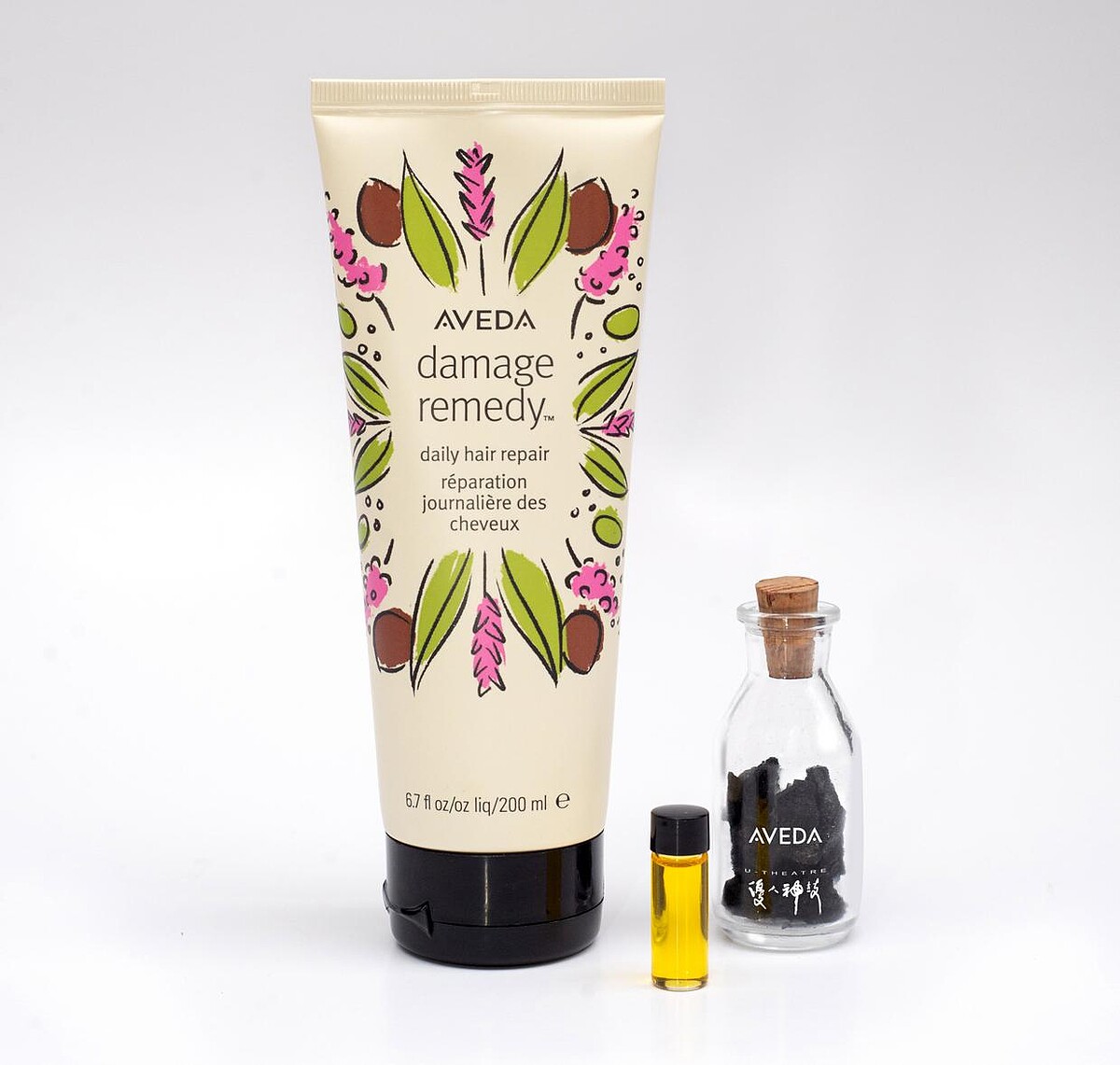 重修舊好限定組內含:復原配方修護精華 200ml 限量版、黑木擴香瓶、AVEDA 特調純香《環山》。