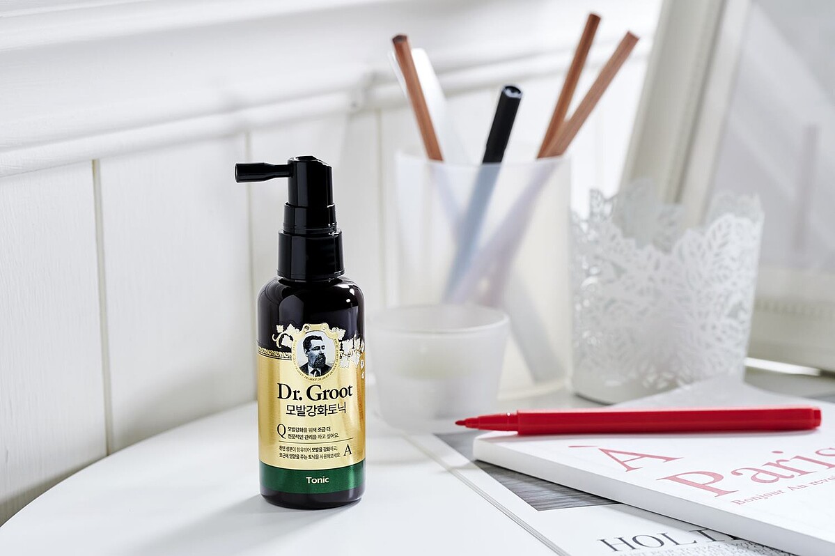 這瓶韓國知名的養髮秘帖系列的Dr. Groot高濃縮頭皮精華,針對亞洲女生經常發生的狀況:如工作壓力每天都有掃不完的頭髮,經常染燙造成的老化,或是頭皮不如過往健康等調配出來的精華,屏除所有會刺激皮的成份,不添加矽靈,無界面活性劑,嚴選純淨自然的成份,包含菖蒲根、何首烏根、苦蔘根、扁柏葉、辣椒果、薄荷腦等七種草本精萃,並添加了維生素B3,快速的為頭皮提供養分,強化髮根,滋養秀髮。