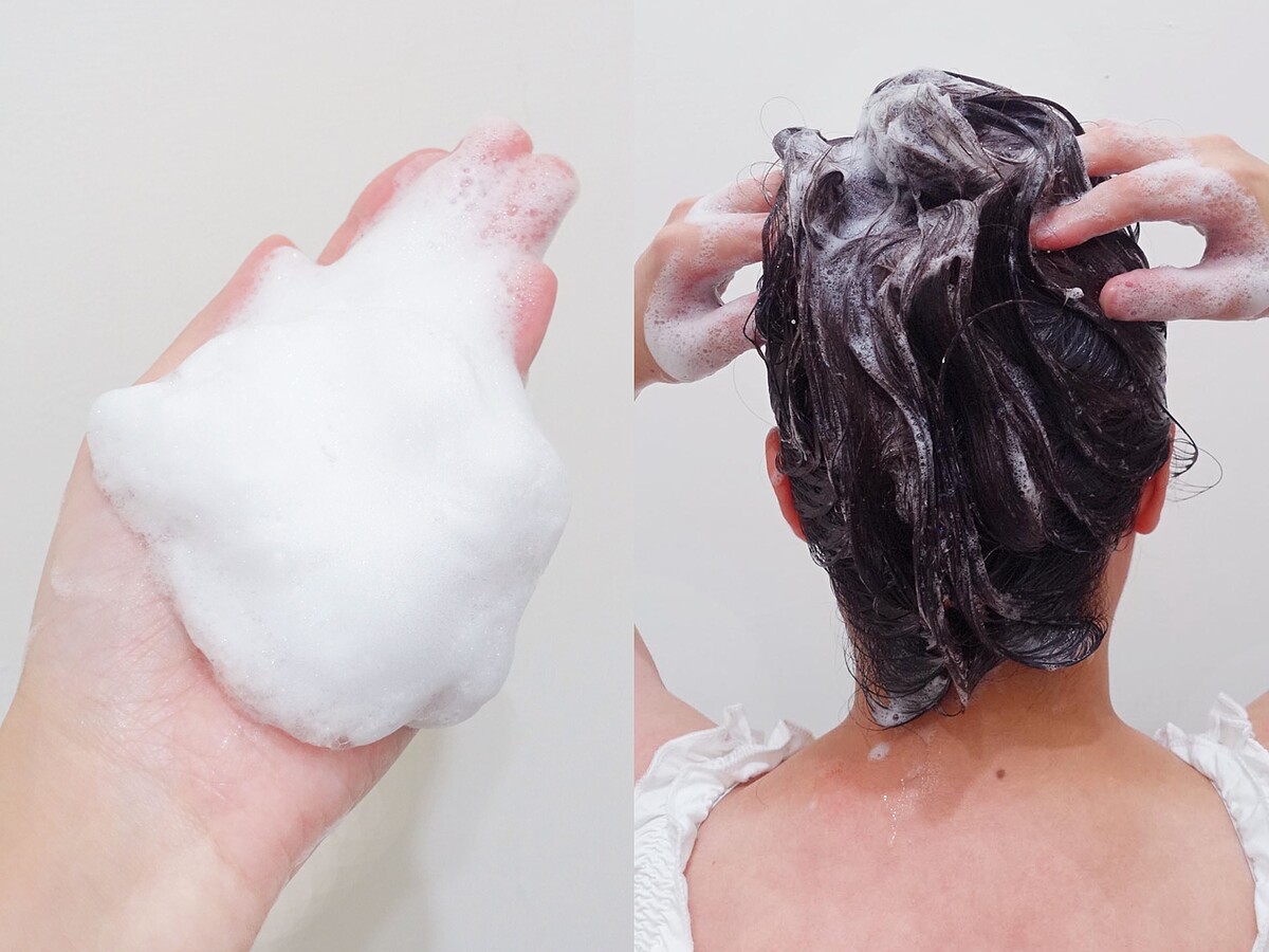 RICCA柔順洗髮精,在濕髮上輕輕搓揉就能產生出大量豐盈綿密的彈力泡泡包覆整頭髮絲,輕鬆帶走髒汙,連頭皮也能感受到深層潔淨的舒適感,最重要的神經醯胺成分能修補損傷毛髮,讓秀髮恢復彈性,連光澤度也跟著提升了。添加的保濕成份讓濕髮也不易有拉扯感及打結,原本毛躁乾澀的髮尾變得超柔順,完全不再卡卡乾澀。吹完頭髮髮根變得特別蓬鬆,改善一直以來頭頂頭髮總是扁塌服貼的問題,洗出鬆軟滑順的空氣感髮絲。最讓M編超驚豔的是隔天睡醒髮尾像吃了乖乖一樣柔順不亂翹,使用一段時間後髮絲變強韌健康,枕頭落髮的情況也漸漸改善!