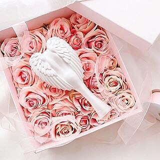 玫瑰金色的天使梳,尺寸稍大一些為20cm,是為了專業沙龍需求而打造的沙龍級天使梳。擁有沙龍級葉片型波浪®梳齒,能更迅速梳開打結髮,減少頭髮卡住不順、拉扯斷裂的情況。