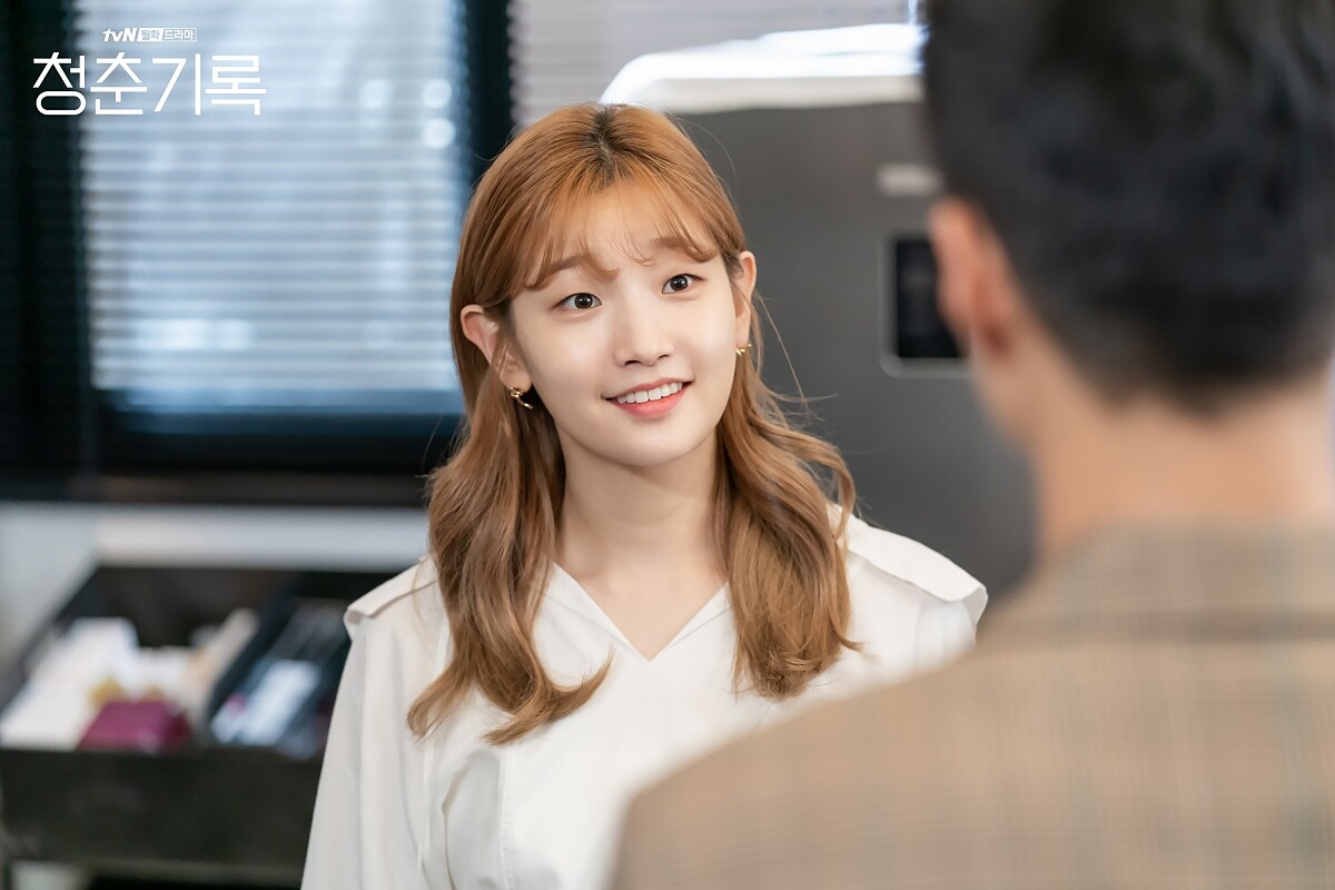 朴素丹在青春紀錄中飾演的是造型師,遊走於時尚產業和娛樂圈之間,髮色是顯眼的淺棕色,感覺起來有微微挑染,長度則是進可攻退可守的中長髮,帶有微微的波浪,有時工作中的畫面會將頭髮紮成低馬尾,時而八字瀏海、時而空氣瀏海,整體乾淨簡單又不失時尚感。