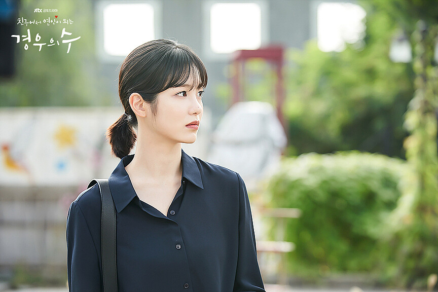 境遇之數的辛睿恩飾演的是不懂得如何表達自己心意的書法家,暗戀好友10年都未曾表白,在劇中苦苦單戀男主角邕聖祐的她,是一頭深色的中短髮,給人一種較為拘謹的感覺,也時常以低馬尾或公主頭現身。