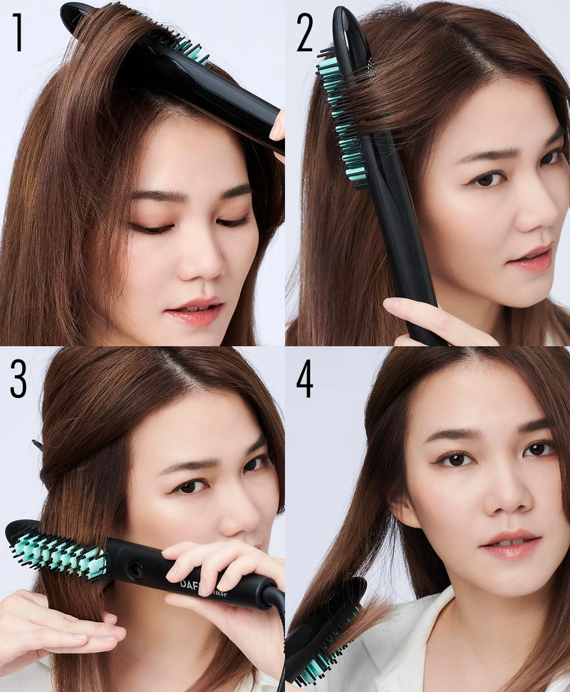 Step1.直接用DAFNI muse造型整髮梳,以Z字型的方式輕輕梳開頭髮的分線,現在可不流行清楚的分線,透過彈力梳齒與185度高溫瞬間改變妳的髮流!