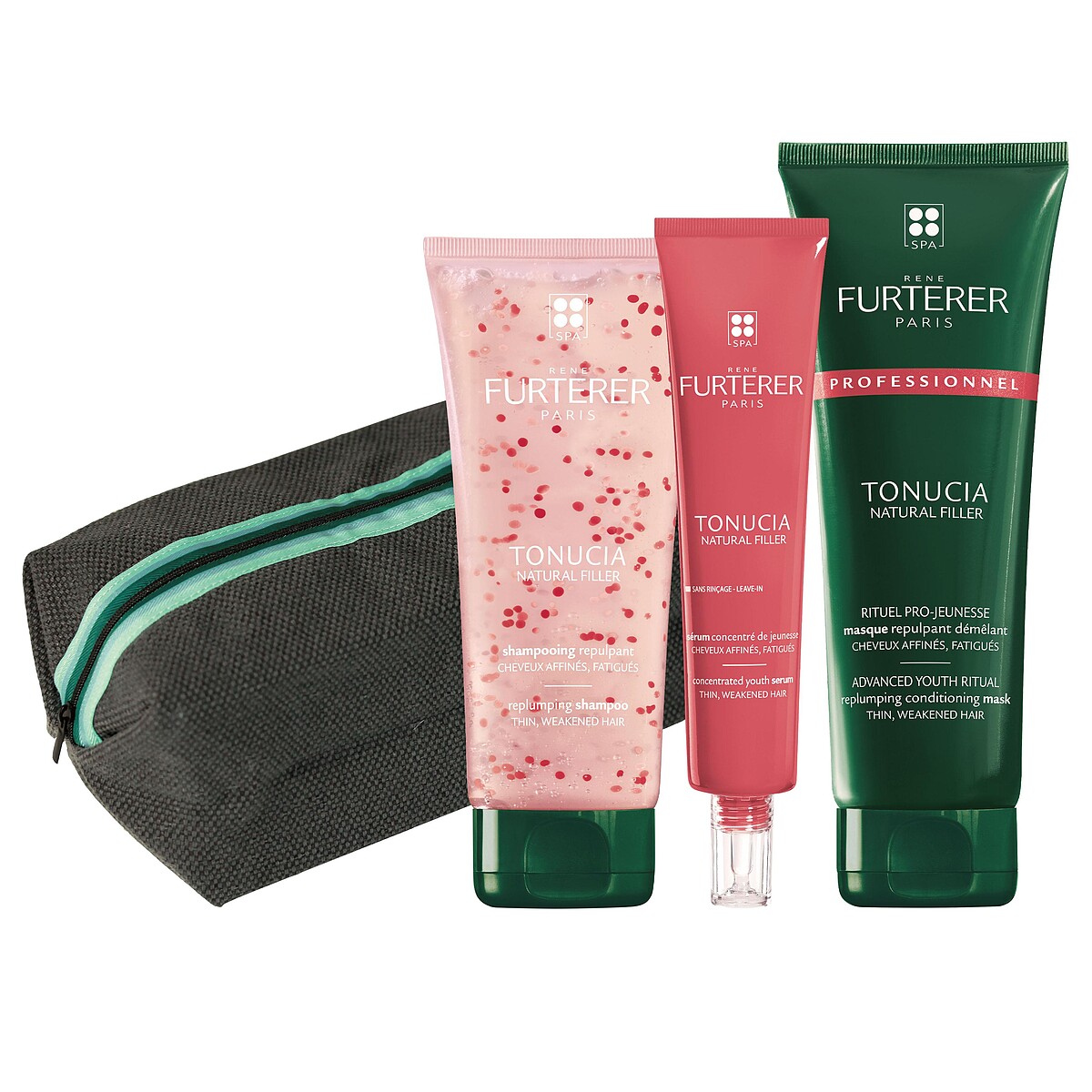 內容:TONUCIA瓔珞木泉能修護膜250ml+TONUCIA瓔珞木泉能精華75ml+TONUCIA瓔珞木泉能髮浴 200ml+RF旅行盥洗包