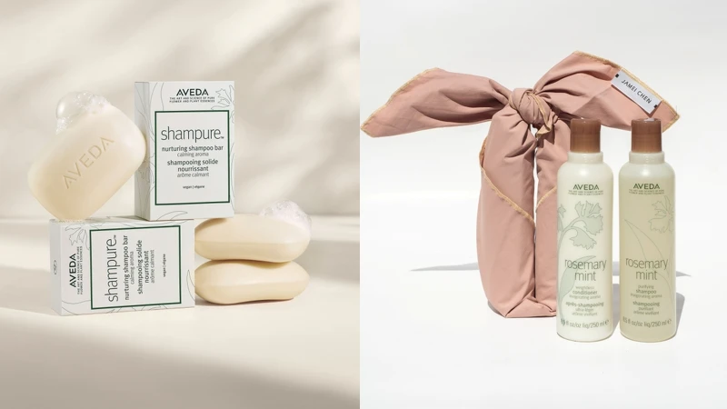 Aveda推出的首款洗髮皂,包裝紙盒來自100%回收再製FSC認證回收材質,不僅可省下2頓塑膠原料,並將生產流程的剩餘原料,全數捐贈給環保機構Clean The World再製成為新肥皂提供給弱勢社區使用。此款香皂有94%的天然成分萃取,無添加界面活性劑及矽靈,內含海甘藍油能使髮絲維持輕盈柔順。
