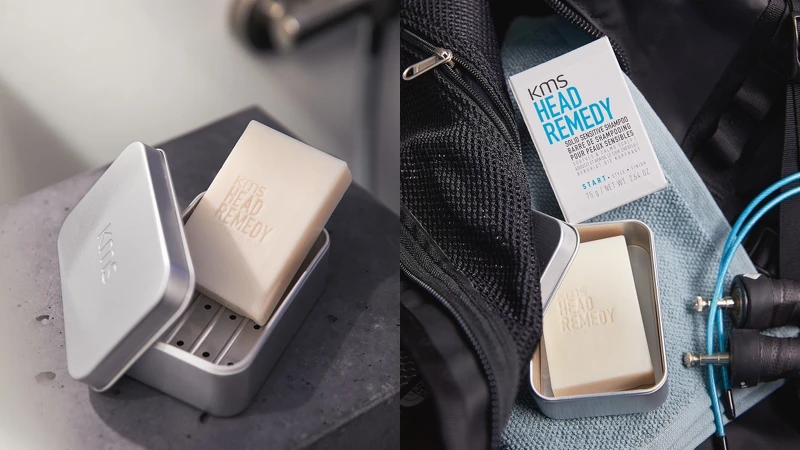 秉持著純素保養的精神,洗髮皂全系列不含動物性來源成分,也含有78%的天然成分萃取,且不含硫酸鹽、矽靈、酒精和合成著色劑,將洗髮精的配方濃縮製洗髮皂中,效果不打折。KMS同步推出可重複利用的洗髮皂盒,讓洗髮皂在潮濕的浴室中可免於浸潤,也方便帶出門時使用。