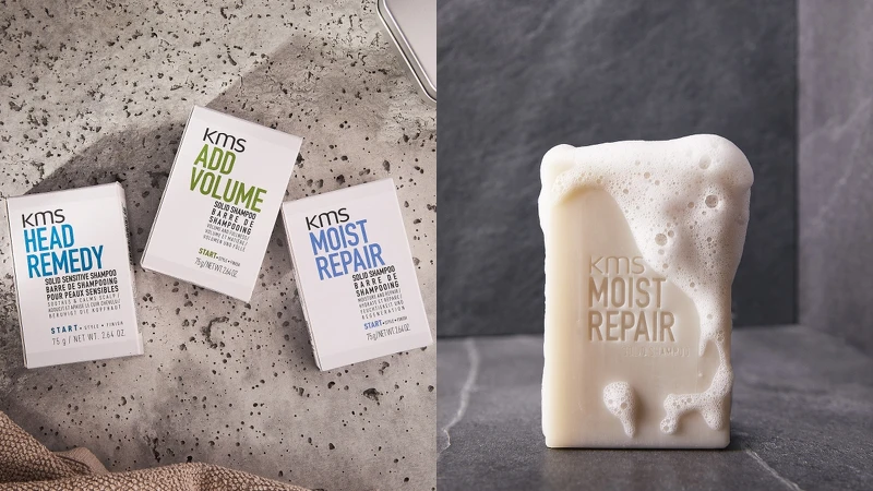 專業沙龍品牌KMS迄今已40年,今年三月推出專業洗髮皂,續品牌經典三大系列:活水、豐盈及保健調理,推出相對應的洗髮皂,外包裝以 FSC 紙盒製成,產品含水量比洗髮精少了7倍,製造過程中減少能源消耗。
