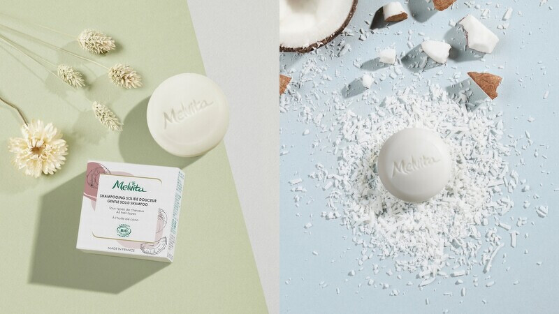 Melvita一直都主打天然,去年全新推出有機洗髮皂,配方中高達99.6%天然成分,更不添加硫酸鹽、化學起泡劑及矽靈。洗髮皂相較洗髮精而言省去瓶身包裝,也使用經FSC認證的100%回收再製包裝紙盒。無水配方不須添加防腐劑,也減少使用水資源和碳足跡,能運用更多椰子油、綠礦泥等天然成分,使清潔時產生的泡沫可被生物性分解,對肌膚而言也是低敏不刺激,另外,一顆55g洗髮皂相當於為250ml洗髮精2倍的用量,等於用了一顆,就少了兩罐空瓶。
