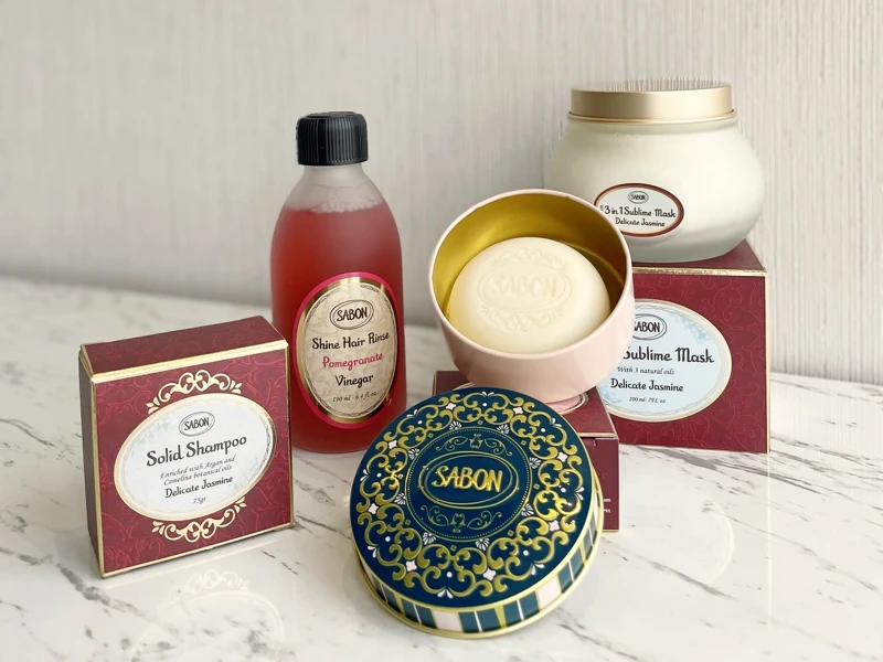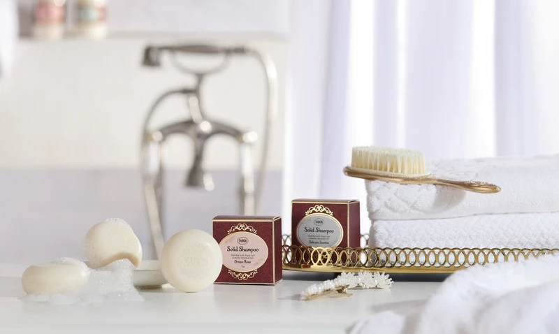 SABON同時也推出充滿品牌識別性的專屬小圓盒,不僅美麗的花紋藝術裝飾如藝術品般,底部也有設計波浪能讓洗髮皂通風乾燥,亦可作為家居裝飾品與收納小物重複使用。