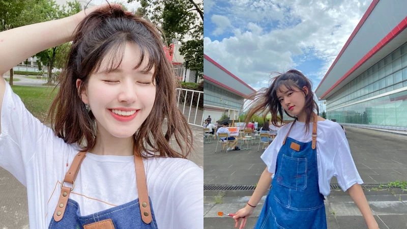 承上述胎毛造型,趙露思也有過空氣瀏海的法行,配上高馬尾清新又可愛。臉型偏圓潤的話,建議還是要讓瀏海有一點空隙、露出一點額頭,兩旁較長、中間較短的造型,對於圓臉的修飾效果會更好。