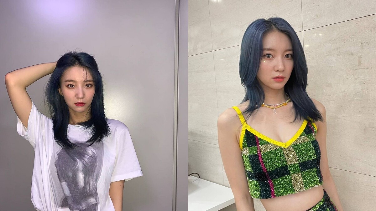 ITZY的成員YUNA前陣子的髮色也是藍色系,但有點不同的是帶了點綠色在內,整體的感覺更偏向海洋氛圍。