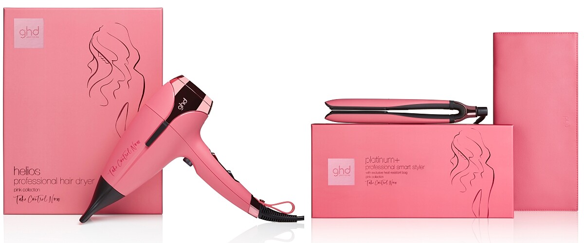 至今ghd每年推出的乳癌限定版已在全球募得超過兩千萬美金。今年,ghd繼續透過紅粉限定版商品支持乳癌慈善活動,品項有兩款,分別為獲獎無數的platinum+ 新白金造型夾和全新推出的helios專業造型負離子吹風機。每售出一支紅粉限定版商品,ghd將捐贈10鎊給Breast Cancer Now乳癌防治基金會,同時搭配核心主題”TAKE CONTROL NOW”。