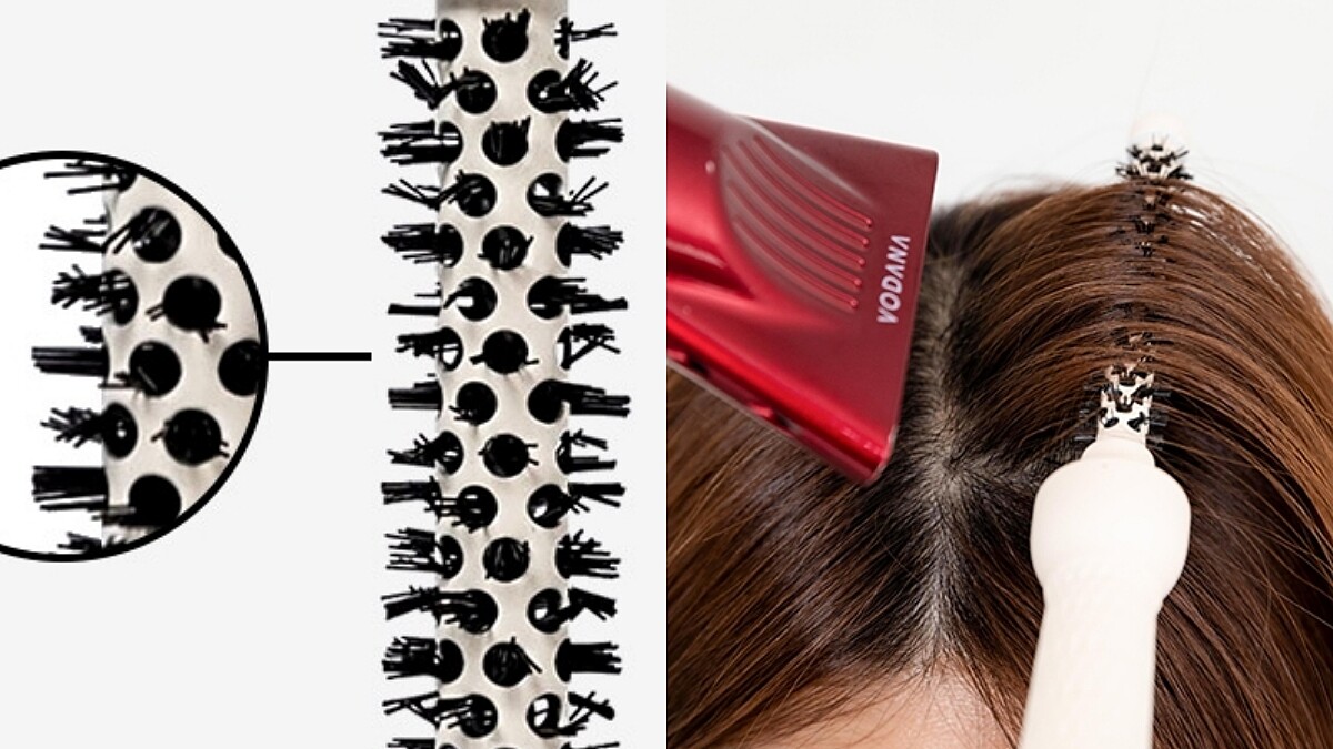 細小的直徑能夠深入髮根,給予自然又有效果的澎度,且經過設計排列的孔洞能使氣流更均勻地分散至髮絲,達到讓髮根蓬鬆的效果,光是多了處理法跟這個步驟,整個髮型看起來就差超多。