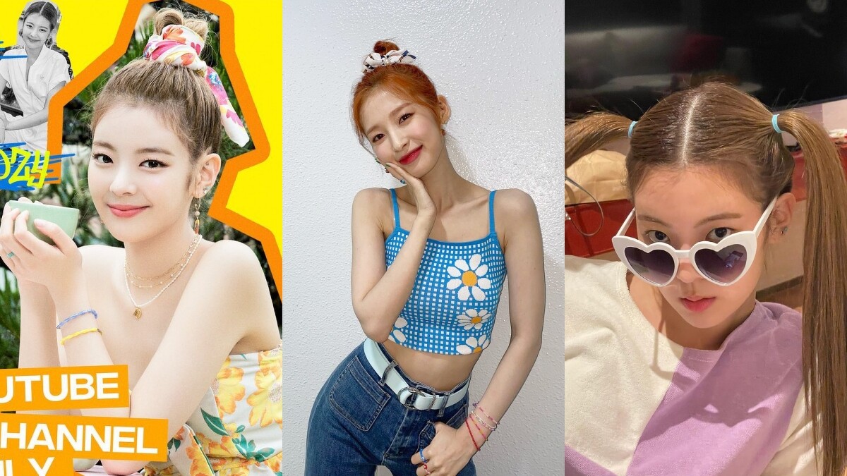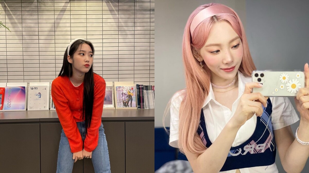 先前天氣還沒轉熱時,不同布料如:燈芯絨、毛呢質料的髮箍,而鮮豔的淺色髮箍則是夏天的大熱門。ITZY的YEJI選擇了鵝黃色的寬版髮箍,與耳環、指甲搭配成同色系,與鮮明的橘紅髮色呈現對比,非常亮眼又有夏季活力的感覺;IU則是運用絲綢質料,與藍色的洋裝搭成一套。