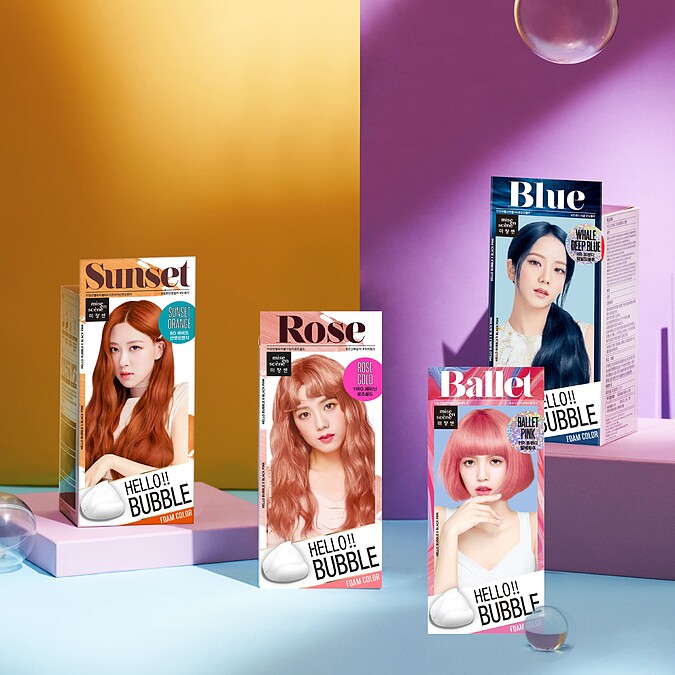 今年韓國夏季髮色的重點趨勢正是如調酒般繽紛的色調,魅尚萱HELLO BUBBLE泡沫染髮劑今夏推出4款以韓風色彩學打造的「夏日微醺髮色」,包含溫柔日落橙、時尚玫瑰金、夢幻柔霧粉與時尚經典藍,鮮豔高飽和色調中又帶上霧面的質感,不僅能營造夏日的輕盈氛圍、更顯白襯膚色。